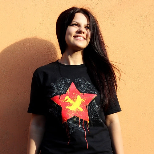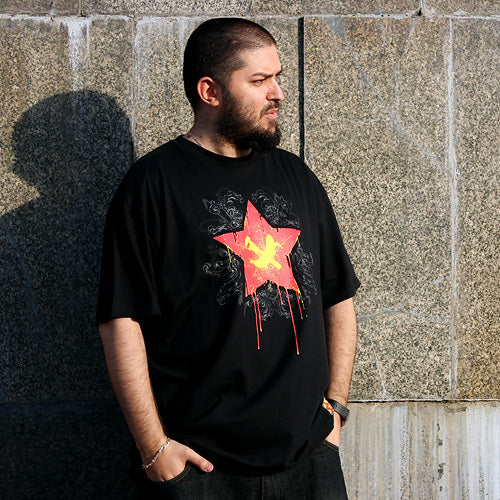Logo-ul CM topit de propria-i epicozitate legendara, coboara pe tricoul din bumbac suta la suta, alaturi de flourish-uri creionate cu cerneala din granit stors in pumn de insusi Prometeu. Scopul sau e de a transforma purtatorul in zeu si de a fura sufletul muritorilor de rand ai caror privire este atrasa inevitabil de tandemul banana /cheie franceza. Tricoul “Vopstea” e intratat de legendar incat ridica pieptul si fruntea. De cumparat! Prioritar! Inainte de paine si plata facturilor la intretinere…